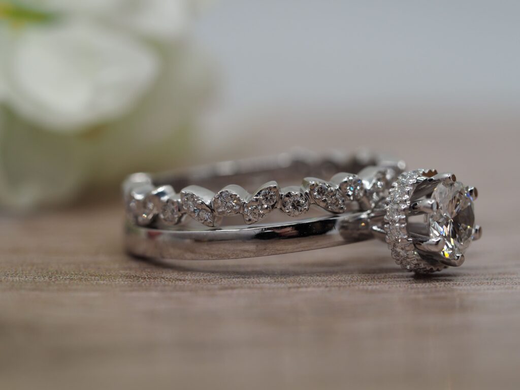 helmikukkasormus timanttiterälehdin, tilaustyö